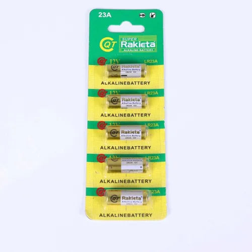 Pila alcalina de 12V, tipo 23A. Recomendada para controles remotos de portones eléctricos, llaveros de auto y dispositivos de seguridad.